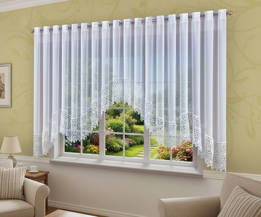 Elegancka firana z gipiurą na srebrnych przelotkach – klasyka i styl w Twoim wnętrzu