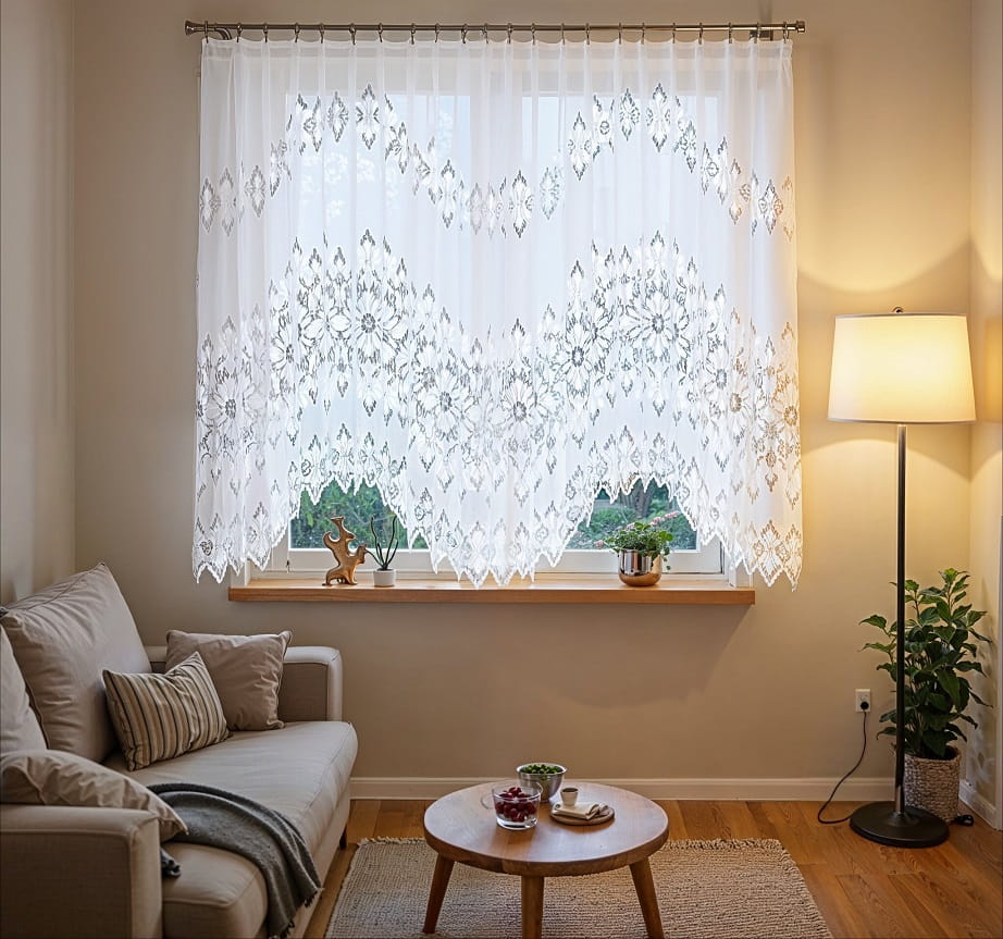 Firana żakardowa z wzorem kwiatowym – klasyczna elegancja w kompaktowej formie