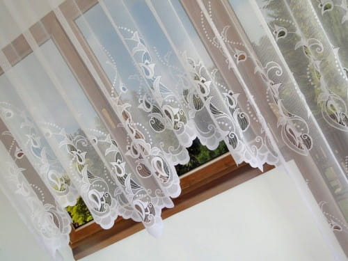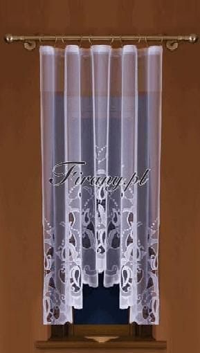 Elegancka firana żakardowa z obszytymi bokami. Tego typu firany nie trzeba prasować, dobrze przepuszczają powietrze i światło. Wzór tradycyjny w delikatne kwiaty co daje bardzo ładny efekt.