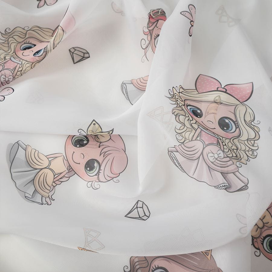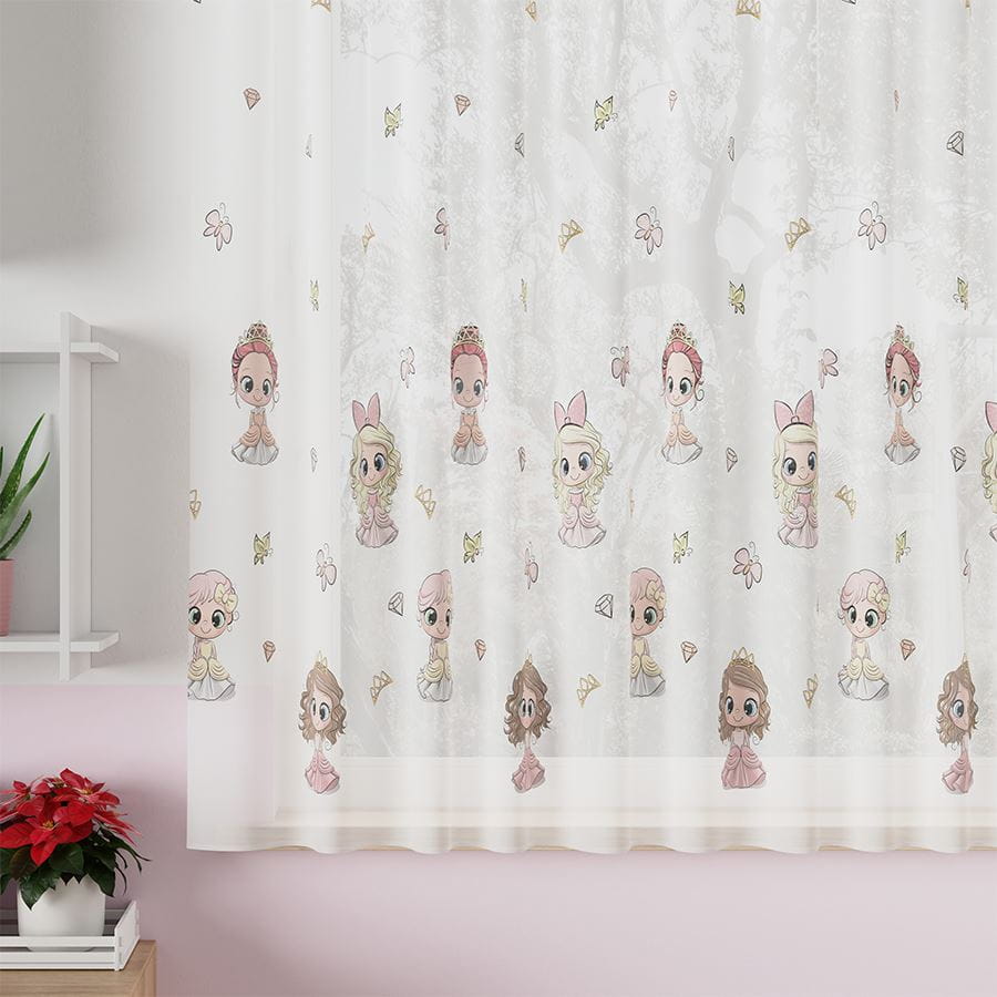 Firanka malowana w postaci Princess to wyjątkowa dekoracja okienna stworzona z myślą o pokoju dziewczynki. Lekka, biała tkanina została ozdobiona uroczymi postaciami księżniczek w pastelowych kolorach, które nadają wnętrzu bajkowego charakteru i sprawiają, że każdy dzień staje się bardziej magiczny. Firanka subtelnie przepuszcza światło, dzięki czemu pokój pozostaje jasny i przytulny, a jednocześnie zdobi okno w niepowtarzalny sposób.