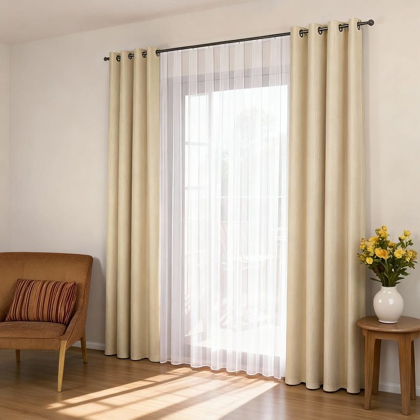 Kolor zasłon: Jasny beż - to subtelny odcień, który dodaje przestrzeni elegancji, przytulności i naturalnej harmonii.