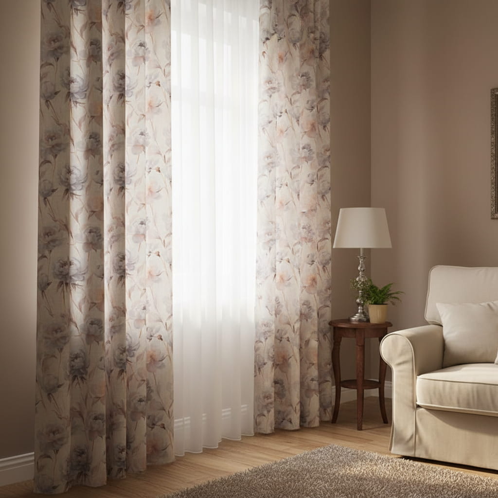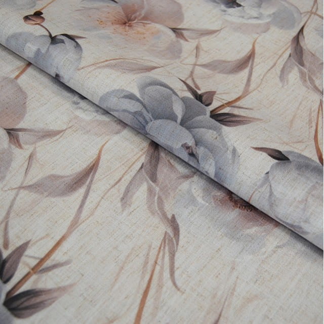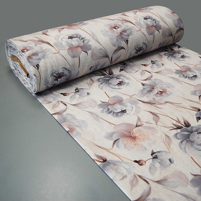 Ta elegancka, matowa tkanina dekoracyjna to doskonały wybór dla osób ceniących subtelność, naturalny wygląd i praktyczność. Dzięki strukturze przypominającej len materiał prezentuje się wyjątkowo elegancko i stylowo, a jednocześnie jest miękki, dobrze się układa i mało się gniecie. Delikatny nadruk kwiatów piwonii w pastelowych odcieniach sprawia, że tkanina wprowadza do wnętrza przytulny, romantyczny klimat, idealnie pasując zarówno do klasycznych, jak i nowoczesnych aranżacji. Materiał jest uniwersalny – sprawdzi się nie tylko jako elegancka zasłona, ale również jako obrus, bieżnik, poszewka dekoracyjna czy roleta tekstylna.