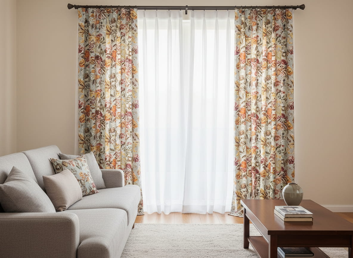 Elegancka tkanina zasłonowa z nowoczesnym wzorem kwiatowym – idealna na zasłony i obrusy