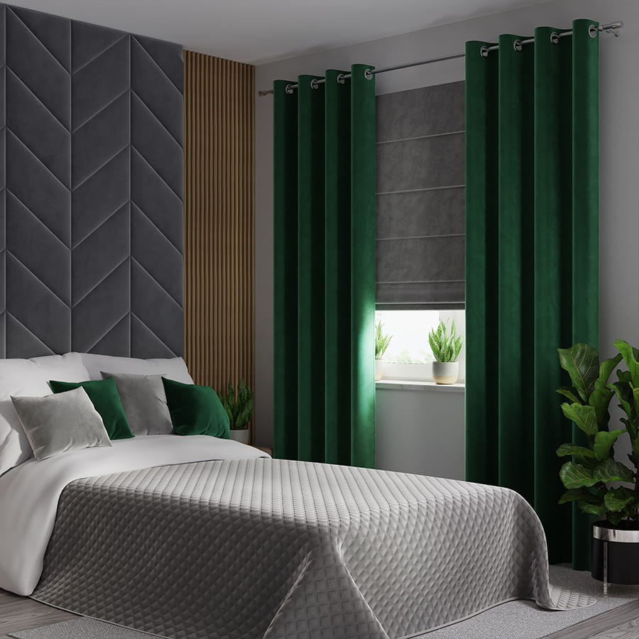 Velveto zasłona ciemna zieleń 140 x 250 cm - do wyboru przelotki, taśma