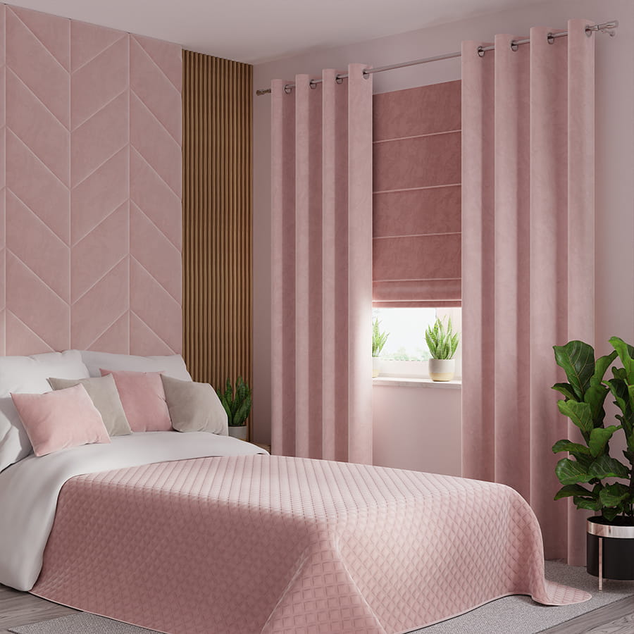 Velveto zasłona jasny róż 140 x 250 cm - do wyboru przelotki, taśma