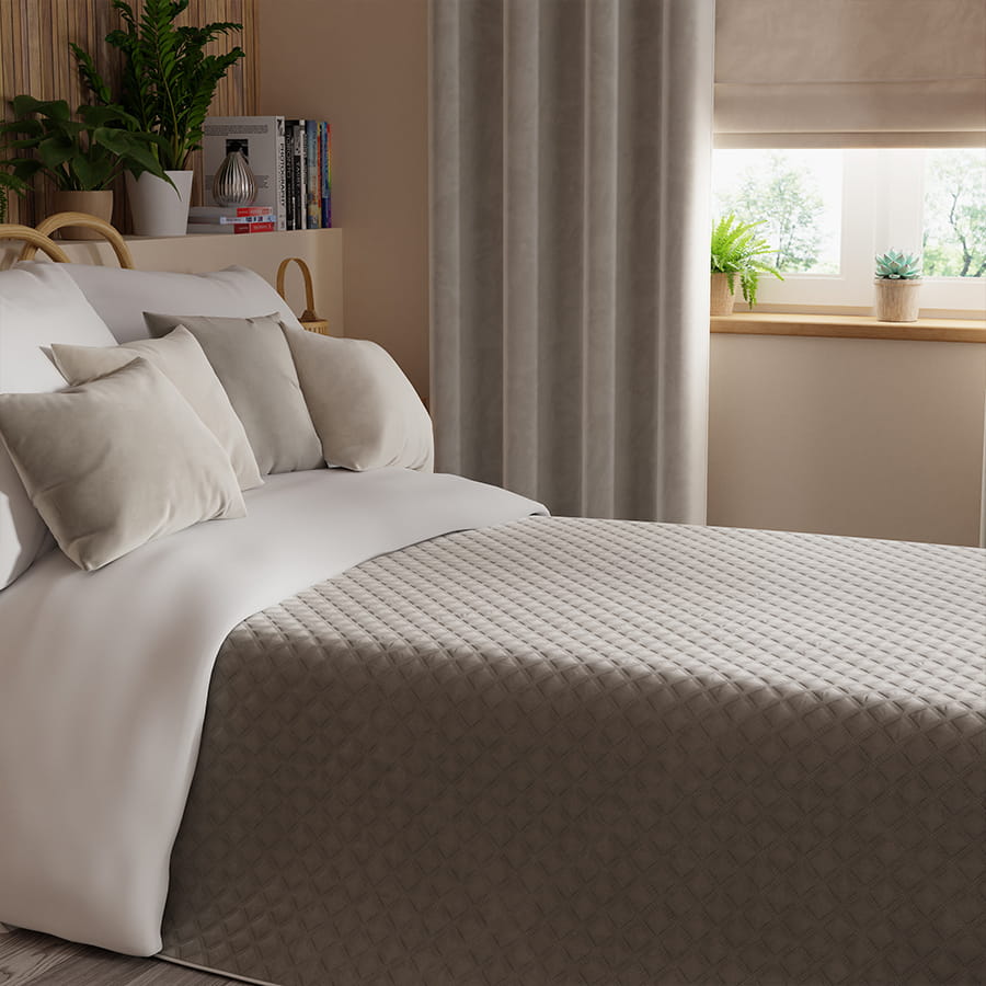 Nadaj wnętrzu wyjątkowy charakter dzięki eleganckiej zasłonie uszytej z wysokiej jakości weluru o aksamitnej strukturze. Ta zasłona to połączenie klasycznej elegancji z nowoczesną funkcjonalnością – miękka, przyjemna w dotyku tkanina pięknie się układa, a subtelny połysk materiału dodaje wnętrzu luksusowego wyrazu. Zasłona idealnie sprawdzi się zarówno w stylizacjach glamour, jak i w bardziej stonowanych, minimalistycznych aranżacjach. Dzięki przelotkom montaż zasłony jest niezwykle prosty i szybki – wystarczy zawiesić ją na rurkę karnisza. Produkt świetnie prezentuje się solo, ale w zestawie z narzutą i poszewkami z tej samej serii stworzy spójną, elegancką kompozycję dekoracyjną.