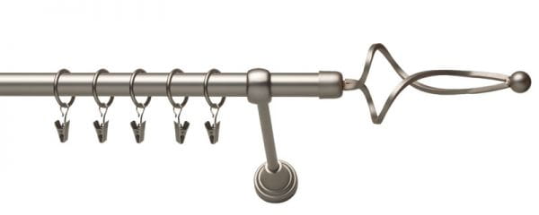 Karnisz metalowy pojedynczy o średnicy 19mm w całości wykonany jest z metalu pokrytego powłoką galwaniczną oraz warstwą lakieru, która zwiększa odporność na ścieranie.