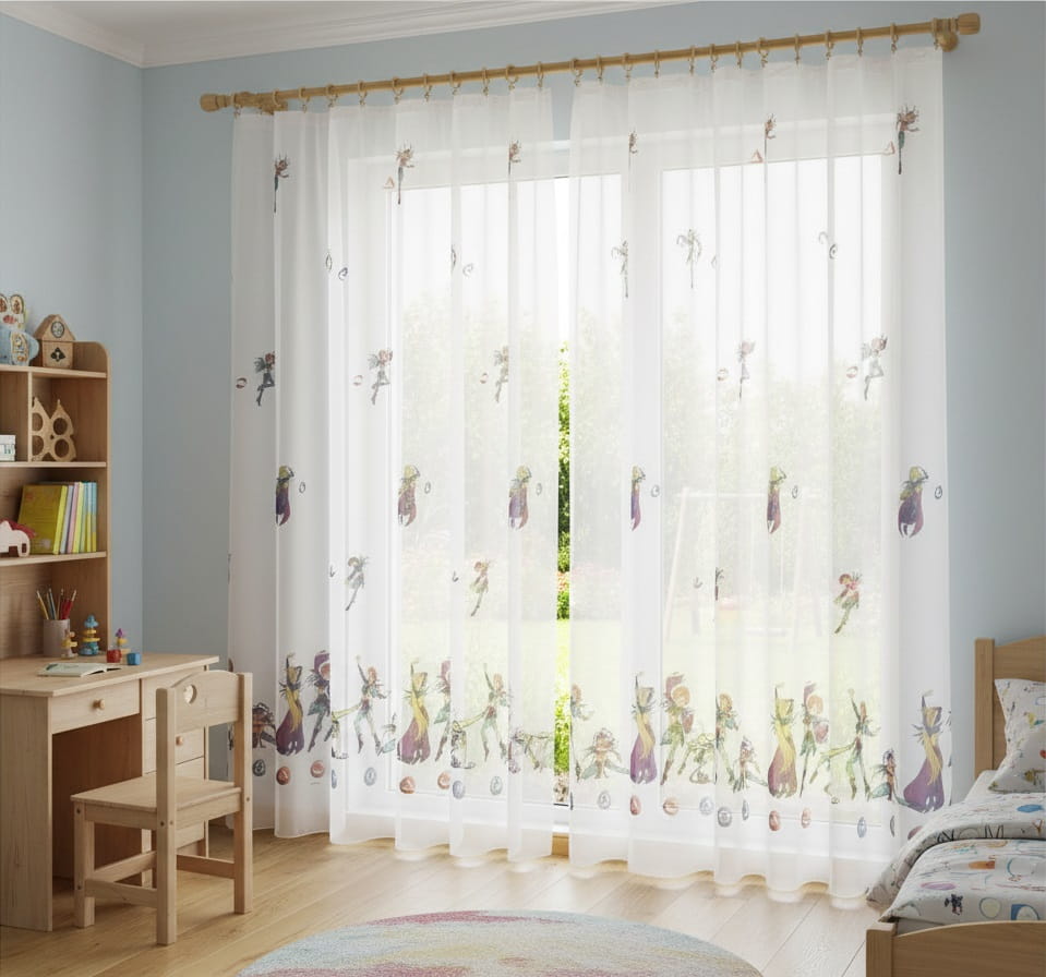 Bajkowe firany dziecięce z kolorowym nadrukiem – radosna dekoracja do pokoju najmłodszych