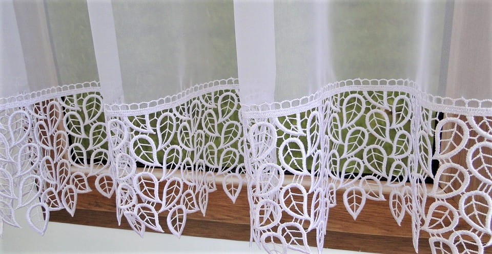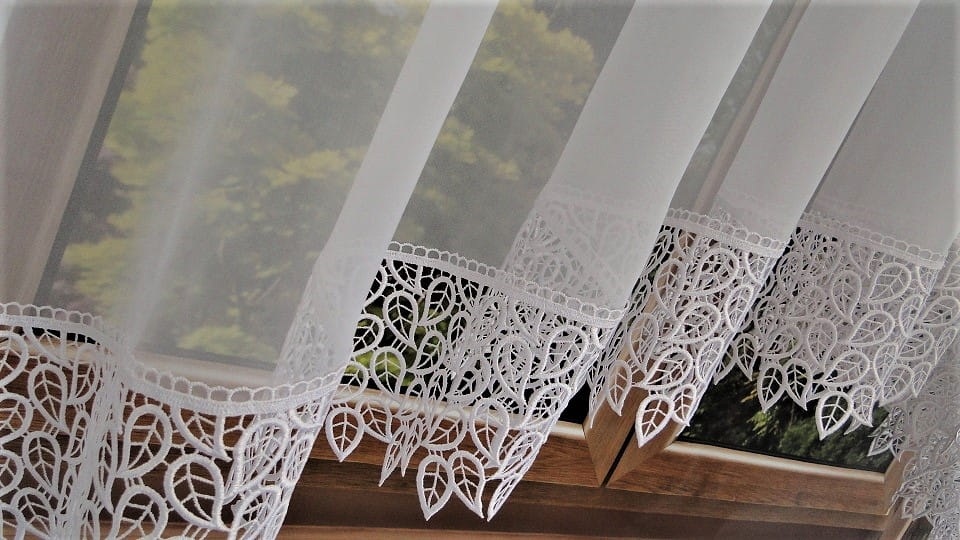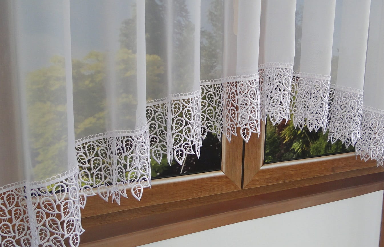 Elegancki komplet firan woalowych z gipiurą – perfekcyjne dopasowanie do okna i drzwi balkonowych