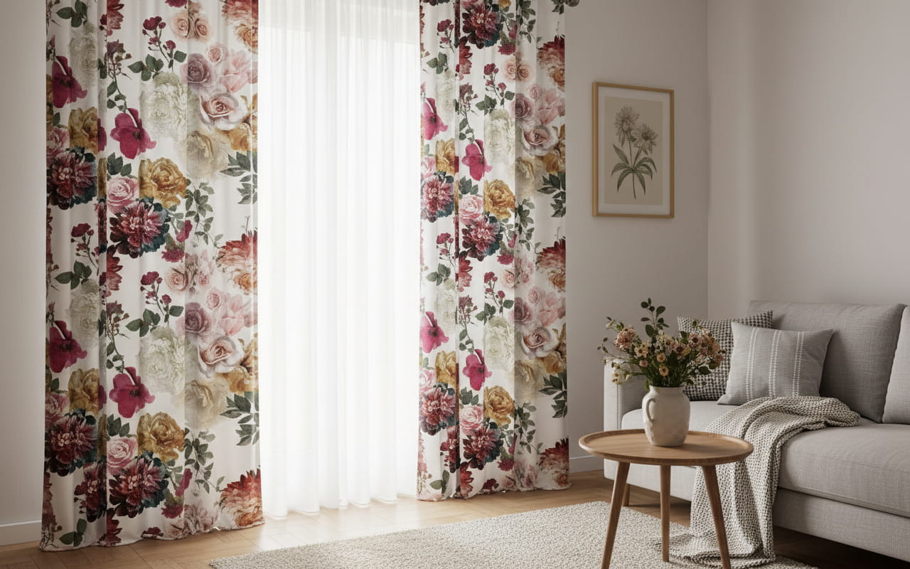 Tkanina zasłonowa z nowoczesnym wzorem w modne kwiaty – stylowy akcent do młodzieżowych i nowoczesnych wnętrz